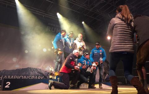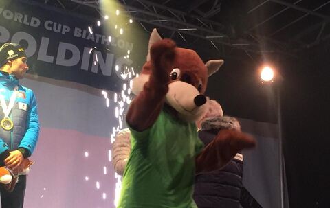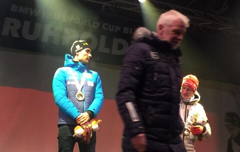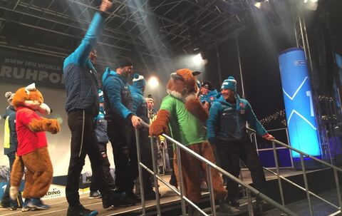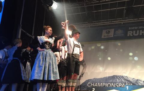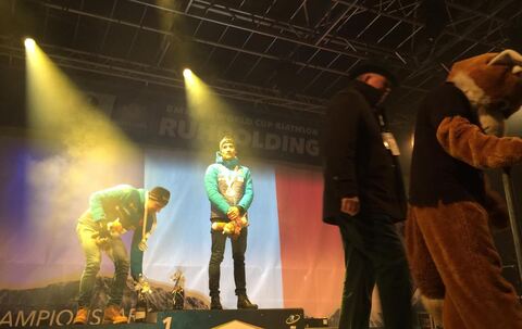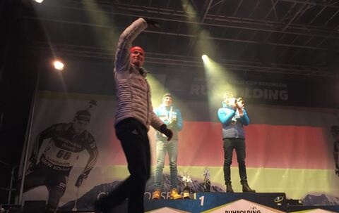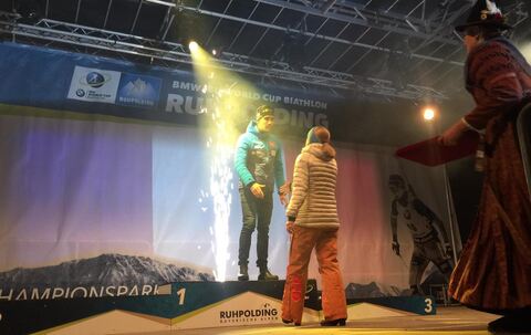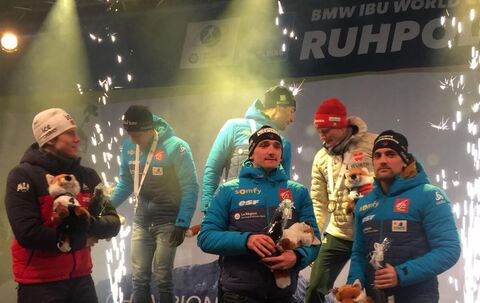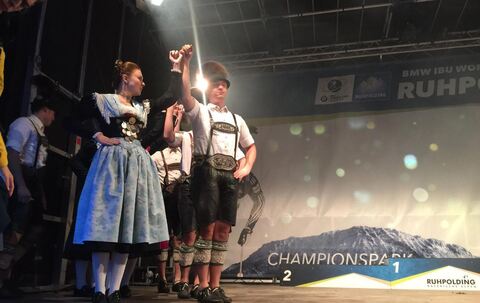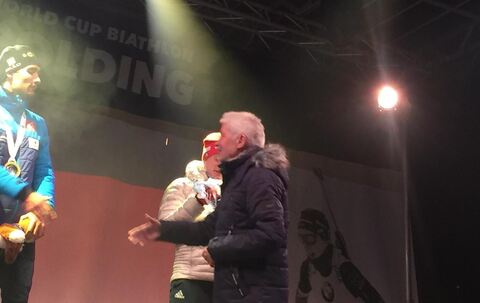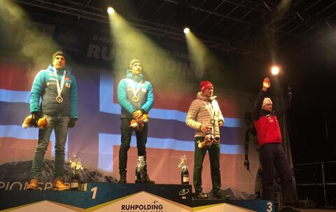 Biathlon: Siegerehrung vom Männer-Sprint im Champions-Park
