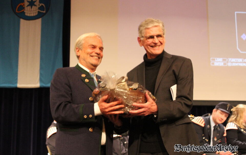 1 / 3Für seinen Vortrag zum Thema »enkeltaugliches Bauen« bedankte sich Dr. Bartl Wimmer (l.), Vorsitzender des Zweckverbandes Bergerlebnis Berchtesgaden, bei Architekt und Stadtplaner Manfred Brennecke mit einem Geschenk. (Fotos/2: Ulli Kastner)
