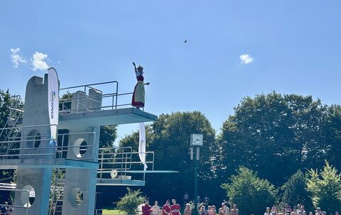 Dirndlfliang im Ruhpoldinger Schwimmbad
