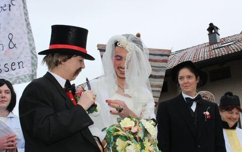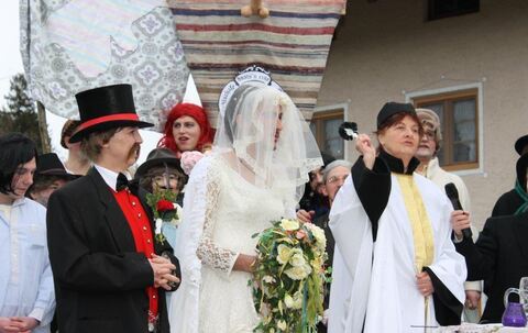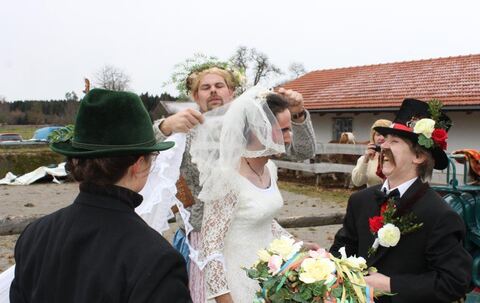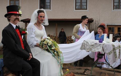 Brauchtum & KulturFaschingshochzeit am Huber-Hof in NiesgauZum Vorbericht: Adelgunde und Weinbert sagen Ja