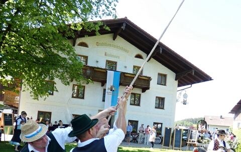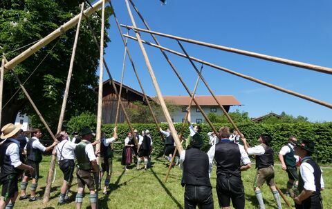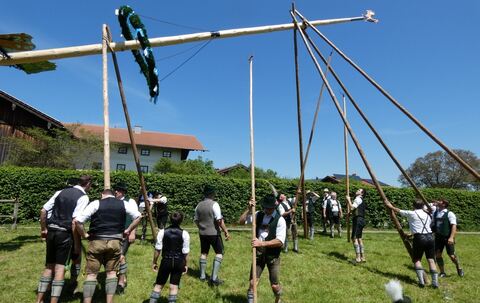 Grün-Ober-Verein Kraimoos stellt neuen Maibaum auf