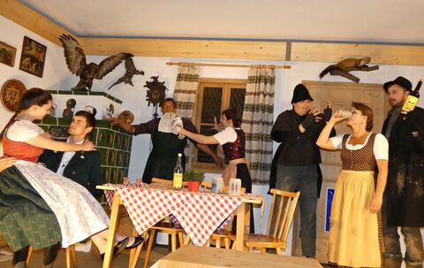Die Theatergruppe des Burschenvereins Erlstätt zeigt derzeit den Schwank "Gspenstermacher".