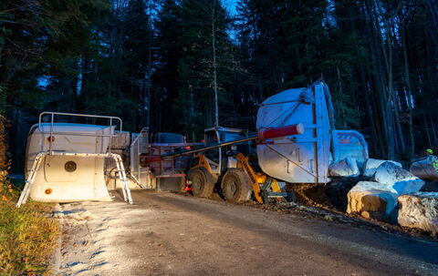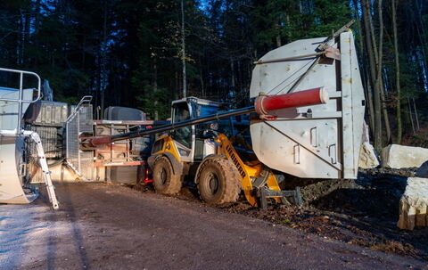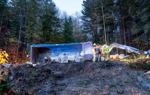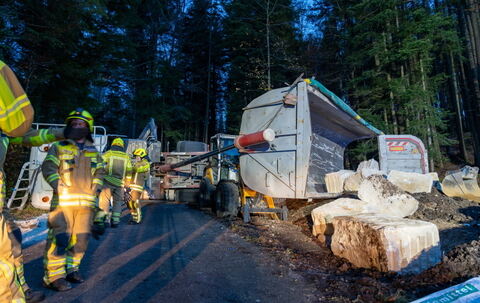 Lkw mit Granitsteinen bei Molberting umgekippt