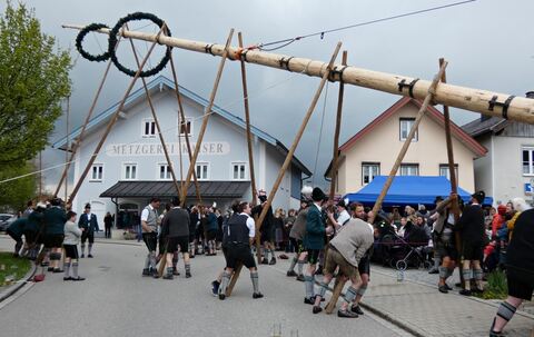 Maibaumaufstellen am Grabenstätter Marktplatz
