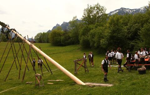 Maibaumaufstellen am Klosterhof in Bayerisch Gmain
