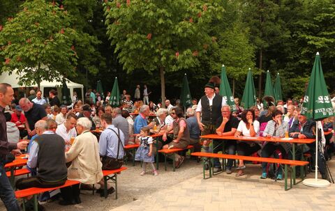 Hunderte Besucher verfolgten am Dienstag (1. Mai 2018) das Maibaumaufstellen am Klosterhof in Bayerisch Gmain.