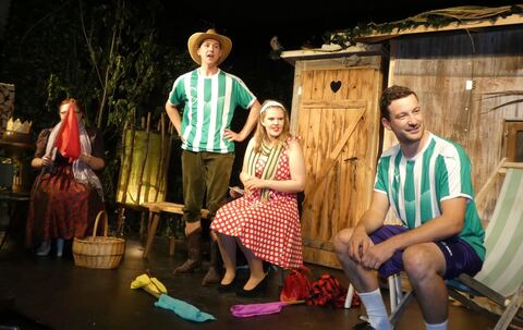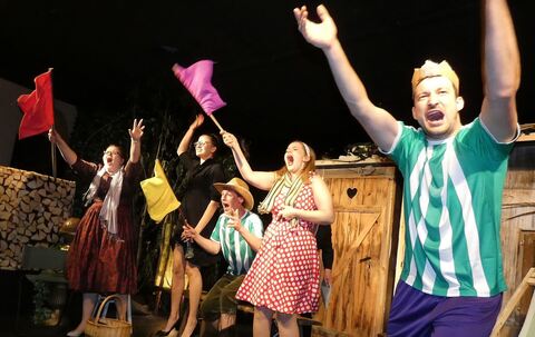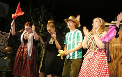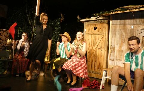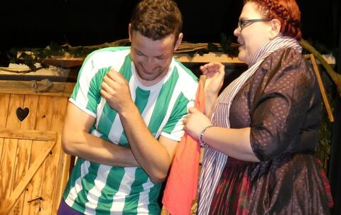 Die Junge Chiemseer Bühne Grabenstätt zeigt noch viermal die bayerische Komödie „Fuaßball Kini“. Die Premiere kam sehr gut an.