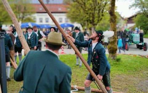 Rettenbach: Maibaumaufstellen mit Schreckmoment
