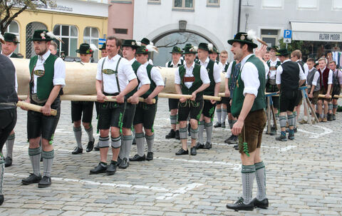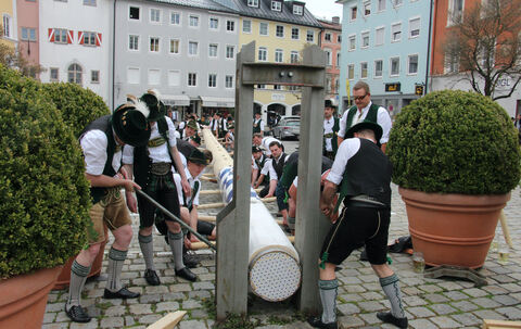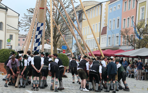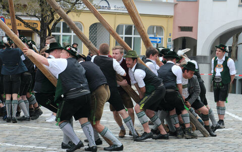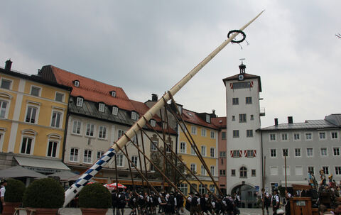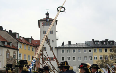Traunstein: Trauntaler Trachtler stellten einen Maibaum auf