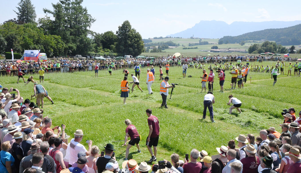 Ainring – Kein geringerer als der stellvertretende bayerische Ministerpräsident und Wirtschaftsminister Hubert Aiwanger war Schirmherr der Europameisterschaft (EM) im Handmähen in Thundorf. Beim Festabend am Samstag schwang er nicht nur verbal die Sense, sondern legte bei heißen Temperaturen hinter dem Festzelt einen Streifen Wiese flach. Beides brachte ihm johlenden Applaus ein.