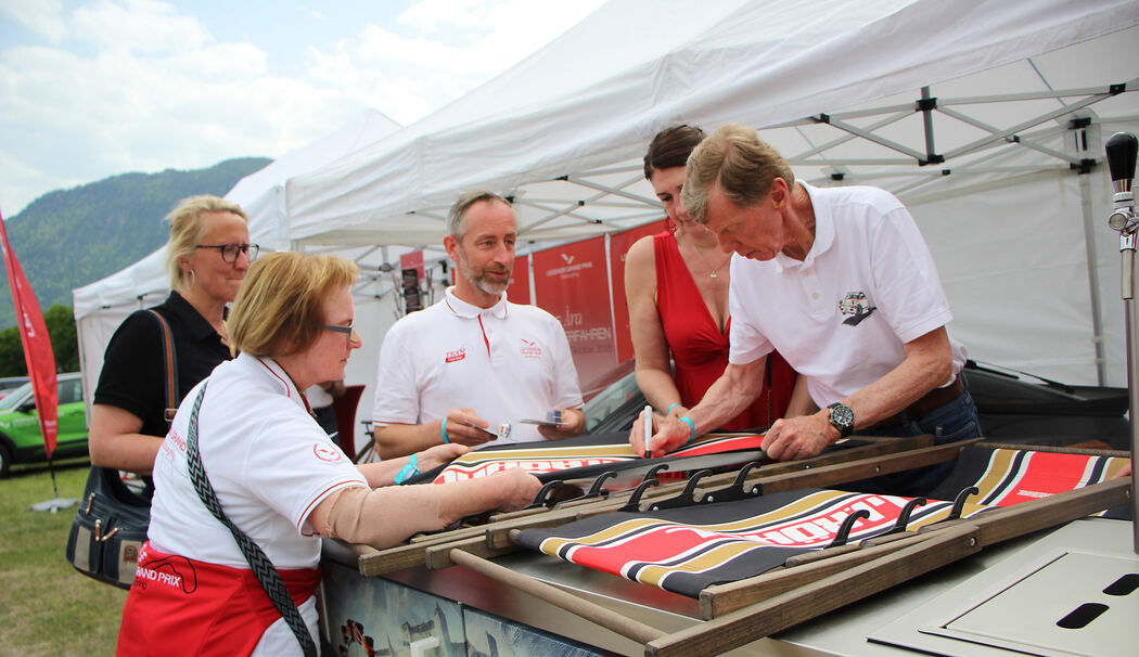 Anger – Das Herz jedes Motorsportfans schlug höher bei »Cars & friends« im Hans-Peter-Porsche-Traumwerk in Anger. Bei der dritten Auflage der beliebten Veranstaltung kamen über 2 000 Gäste von nah und fern, gut doppelt so viele wie in den Vorjahren. Kein Wunder, waren als Publikumsmagnete die Rennfahrerlegenden Walter Röhrl und Jörg Bergmeister sowie der als Stuttgarter Tatort-Kommissar Thorsten Lannert bekannte Schauspieler Richy Müller gekommen.
