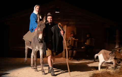 Vor aufwendigen Kulissen folgten die dick eingemummten und zum Teil in warme Decken gehüllten Gäste der Geburtsgeschichte Jesu Christi. Für rund 650 Besucher ist die Halle ausgelegt. Durch ein Wechselspiel an Gesangs- und Musikstücken mit schauspielerischen Einlagen wurde den Zuschauern das Krippenspiel auf besonders ruhige und besinnliche Weise nähergebracht. Besonderen Charme erhielt die Vorstellung durch die mit bayerischem Akzent verfassten Texte, die authentischen Auftritte der Schauspieler und nicht zuletzt durch die tierischen Nebendarsteller. Musikalisch umrahmt wurden die Auftritte durch alpenländische Klänge lokaler Musikantengruppen und heimischer Chöre.