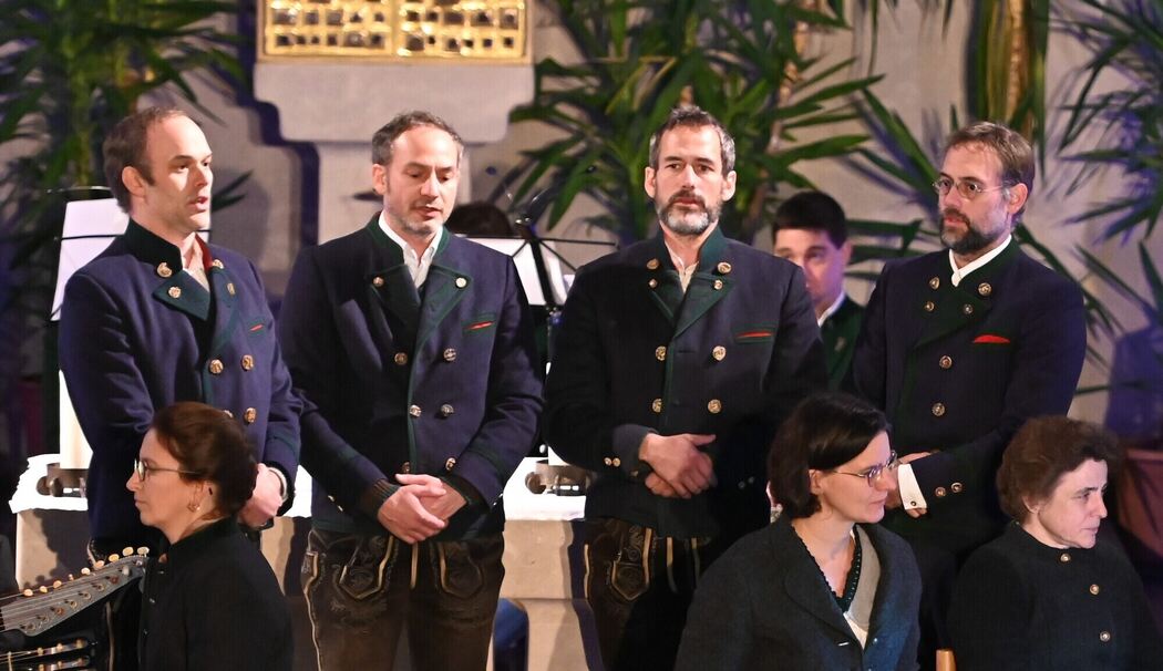 Mit »Gott grüaß enk« eröffneten vier Bläser der Trachtenmusikkapelle Großgmain das Adventssingen. Im weiteren Verlauf erfreuten sie die Zuhörer und Zuhörerinnen mit Titeln wie »Jetzt geh i hin auf Bethlehem«, »O Maria wie gefährlich« oder »Da Weihnachtsfrieden«. Fein eingespielt und begleitet von der Brodhauser Musi traten die Ramsauer Sänger mit dem Lied: »Geh Brüada wisst's es …« vor das