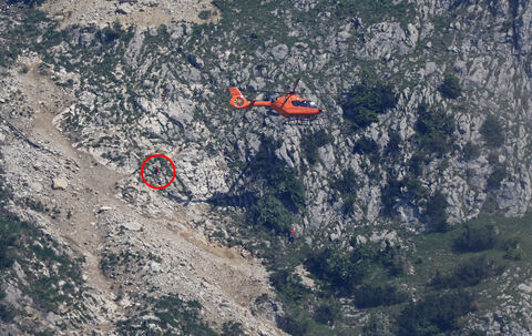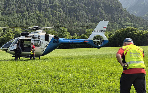 Der 24-jährige Sohn konnte seinen Vater geländebedingt weder erreichen noch auf den Steig zurückbringen und setzte deshalb gegen 13.45 Uhr bei der Integrierten Leitstelle Traunstein (ILS) einen Notruf ab, die die Bergwachten Bad Reichenhall und Freilassing und den Traunsteiner Rettungshubschrauber »Christoph 14« alarmierte. Die Heli-Besatzung setzte nach einem kurzen Suchflug mit der Rettungswinde zunächst einen Bergretter beim Verunfallten und dann den Notarzt oberhalb beim Sohn ab, die die beiden Männer im absturzgefährlichen Steilgelände in Rettungssitzen sicherten, sodass sie der Heli mit der Winde aufnehmen und zum Zwischenlandeplatz ausfliegen konnte, wo der Arzt den 59-Jährigen untersuchte und weiter notfallmedizinisch versorgte, bevor ihn eine Rettungswagen-Besatzung des Berchtesgadener Roten Kreuzes (BRK) in die Kreisklinik Bad Reichenhall einlieferte. Acht Bergretter waren gute zwei Stunden im Einsatz.