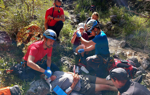 Der notärztlich versorgte Patient mit den schweren Verbrennungen wird im Gelände beim Abtransport plötzlich bewusstlos, sein Kreislauf bricht zusammen und er muss wiederbelebt werden. Für den Abtransport einer Patientin zusammen mit dem ebenfalls als Canyon-Retter geschulten Berchtesgadener Bergwacht-Notarzt aus der Schlucht müssen die Retter eine rund 100 Meter lange Seilbahn und einen Schrägaufzug bis zum Übergabe-Punkt am Wanderweg bauen. Dort übernimmt dann die Reichenhaller Bergwacht die Frau und befördert sie über den Wanderweg bis zum Rettungsfahrzeug hinab.
