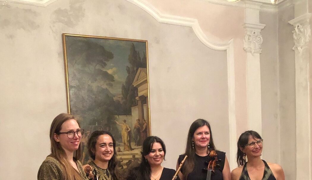 Zum musikalischen Abschluss des Abends schlich sich dann noch Maurice Ravel – auch er wie die Komponistinnen ein Unangepasster – in das Programm »Damenspiel«, mit seiner Sonatine für Flöte und Streichquartett. Gleichsam als Weiterführung des Blumenbouquets fügt er, der Meister der Klangfarben, der Töne malt und so impressionistische Atmosphären schafft, sich hervorragend ins Programm. Die künstlerische Gestaltung des »Constanze Quartets« mit der Flötistin ließen stringente Harmonik und elegante Melodien lebendig werden.