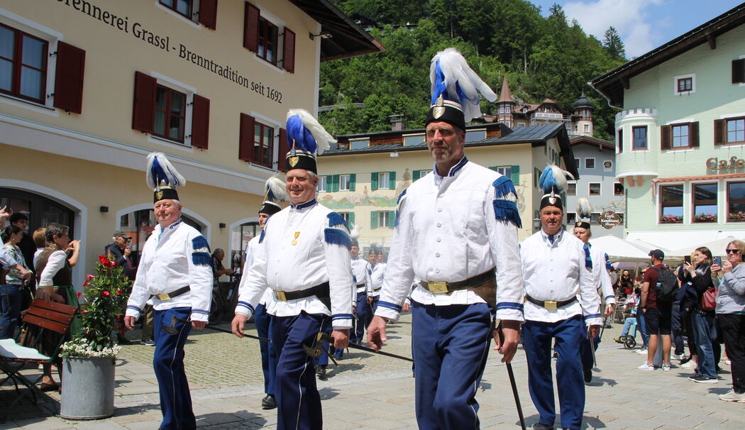 Bei strahlendem Sonnenschein fuhren die Mitarbeiterinnen und Mitarbeiter des Salzbergwerks Berchtesgaden und zahlreiche Ehrengäste wie Landrat Bernhard Kern und Bürgermeister Franz Rasp zum Festakt unter Tage in den Berg ein. Ein ganz junges Ensemble der Bergknappen- und Marktkapelle umrahmte ihn feierlich.