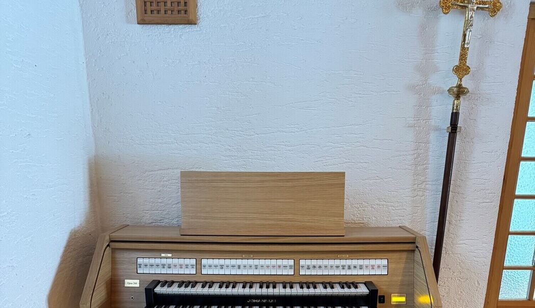 Die digitale Kirchenorgel ist ein Instrument aus heller Eiche mit 36 Registern, die sowohl optisch wie auch klanglich sehr gut in den Raum passt. Ihre Vorgängerin ist in die Jahre gekommen, die Elektronik war überholt und Reparaturarbeiten machten keinen Sinn mehr. Damit jedoch an diesem Ort weiterhin Orgelmusik gespielt wird, haben sich die Organisten aus dem Stiftsland auf die Suche nach