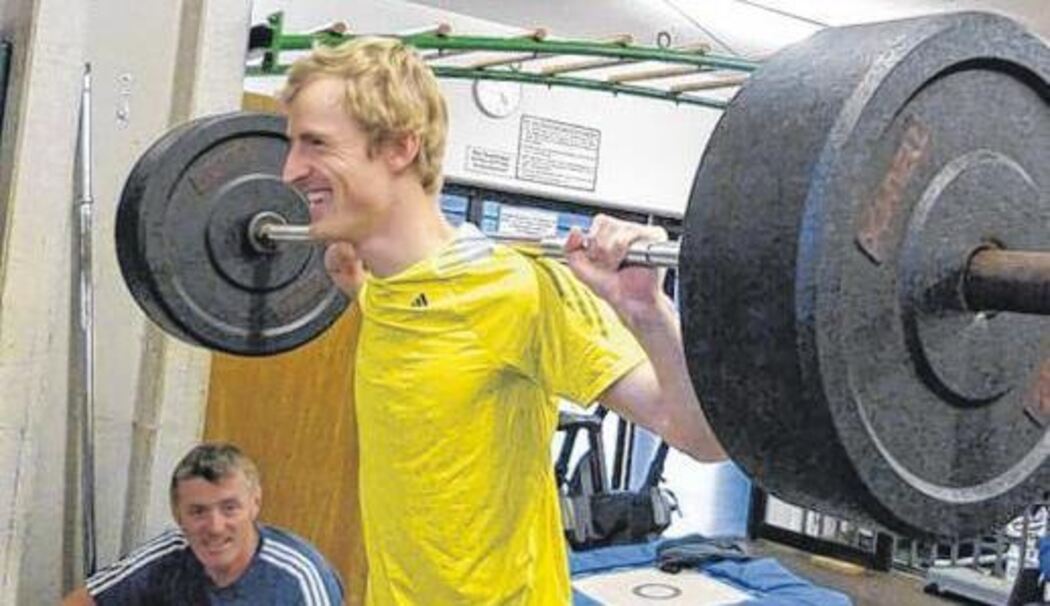 Severin Freund arbeitet immer wieder mit seinem Heimtrainer Christian Leitner zusammen. Am letzten Wochenende unterzog sich Freund harten Trainingseinheiten im Kraftraum des BSD. (Foto: Wechslinger)