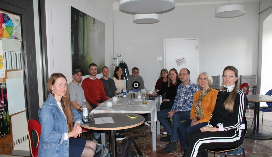 Projektleiterin Juliana Straßer (4. v.r.) und Irmhild Dorth, ehrenamtliche Fachkraft (2.v.r.), schaffen Raum für Begegnungen. (Foto: Babett Wegscheider)