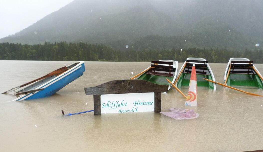 Am Sonntagvormittag kam es dann zu mehreren Murenabgängen im Bereich Berchtesgaden. Dabei wurden auch Gebäude beschädigt. Der Königssee trat trotz geöffneter Schleusen über die Ufer, der Hintersee war 1,50 Meter höher als normal. Die Brücke am Abfluss drohte einzustürzen, der dort befindliche Kiosk ebenfalls. Überhaupt hat es die Gemeinde Ramsau teilweise sehr hart betroffen. Der Hintersee war nicht mehr zu erreichen.
