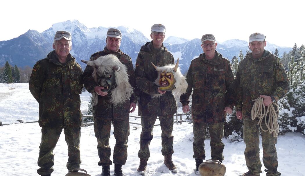 Bischofswiesen – Der Winter hat Einzug gehalten in der Region und die Stimmung auf die Vorweihnachtszeit ist schon erkennbar. Das Brauchtum im Talkessel wird groß geschrieben und ein großer Teil davon sind die Buttnmandl, die am 5. und 6. Dezember durch die Lande ziehen. Seit 63 Jahren machen das auch die Struber Jager. 1962 ins Leben gerufen vom damaligen Hauptfeldwebel Helmut Weinbuch. Am 5. Dezember wird wieder pünktlich um 14 Uhr das Kasernentor geöffnet und der Nikolaus mit seinen Engeln, den Buttn-mandln und Kramperl sowie den Mulis von der Tragtierkompanie aus Bad Reichenhall marschieren von der Jägerkaserne zum Schloßplatz in Berchtesgaden, begleitet von einigen Musikanten, die auf der Kutsche mitfahren werden.