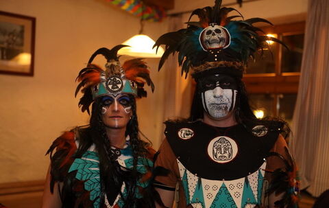 Aber auch die Kostüme der anderen Besucher waren toll. Ein Pärchen ging als Maya-Indianer und zog sämtliche Blicke auf sich. Hingucker waren auch eine Gruppe mit beleuchteten Schneeballkostümen, eine Frauengruppe mit Wolpertinger-Accessoires, eine Gruppe, die als »Wilde Kerle« ging, oder zwei junge Damen, die sich als Senf und Ketchup verkleidet hatten. Als kaiserliche Hoheit trat eine junge Dame, die als Sissi ging, auf. Sie alle feierten mit Rittern, Neandertalern, Nonnen, Elfen oder außerirdischen Figuren.