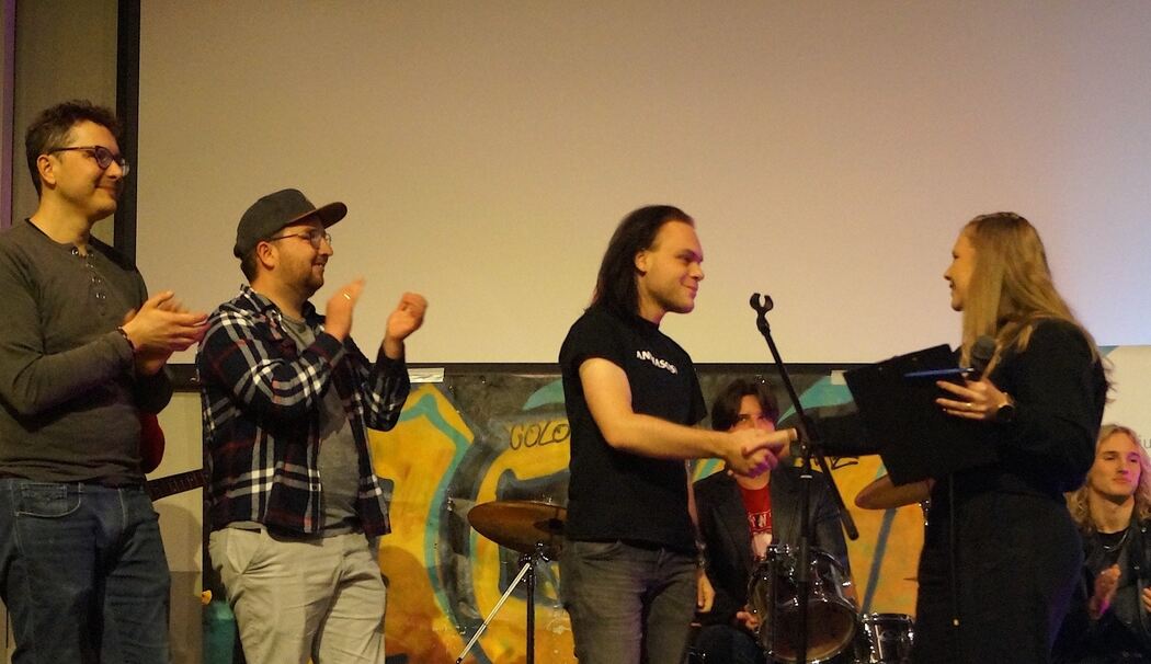 Katharina Brüderl, ehrenamtlich im Vorstand des Kreisjugendrings tätig, übernahm die Begrüßung, nachdem die Band »Prowler Cult« mit Cedric Schulz, Jesse Hilbig, Jakob Hellmann, Sylvan Haberstroh, Philipp Kusnezow und Luis Lippert allen mit »Seven Nation Army« kräftig eingeheizt hatte. Während des gesamten Abends sorgte die Band auch mit anderen Cover-Songs, wie etwa »Song 2« von Towa Bird oder