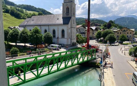 Marktschellenberg – Die Behelfsbrücke, über die der Verkehr während der restlichen Bauzeit der neuen Marktschellenberger Bundesstraßenbrücke fließen soll, wurde zügig ...