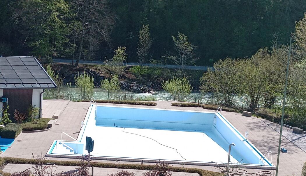 Die Kunststoffwände des leeren Beckens sind in einem kräftigen Hellblau gestrichen, an jenem Donnerstagvormittag leuchten sie in der Sonne. »Den Dreck habe ich mit dem Hochdruckreiniger gut wegbekommen«, sagt der 53-jährige gebürtige Marktschellenberger, blickt zufrieden auf das Becken. Als Einstiegshilfen gibt es eine Treppe und drei Leitern. Einzelne Trittbretter fehlen. »Die sind beim Richten«, bemerkt Stefan Kandler. »Nicht, dass sich einer wehtut«, schiebt er nach.