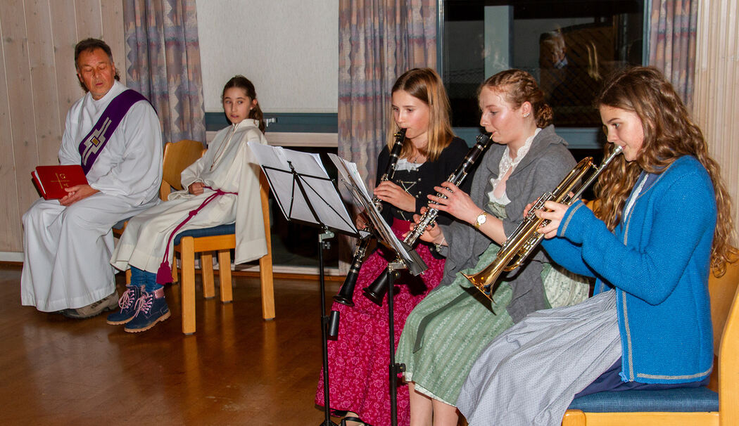 Piding – »Der Mensch hat keine Zeit, wenn er sich nicht Zeit nimmt, Zeit zu haben«, freute sich Diakon Peter Walther vom Pfarrverband Anger-Aufham-Piding über die Zeit, die sich Mitglieder und ihre Gäste vom Köcheverein Berchtesgadener Land genommen hatten, um in der hektischen Vorweihnachtszeit gemeinsam in einer Adventsandacht zur inneren Einkehr zu gelangen. Die Rehrl-Dirndln Antonia, Leni und Marie aus Saaldorf-Surheim sorgten mit ihren Instrumenten musikalisch für die stimmungsvolle Begleitung im Ausweichquartier – Gebetsraum im Pidinger Jugendheim –, das als Ersatz für die in Renovierung befindliche Pidinger Pfarrkirche diente.