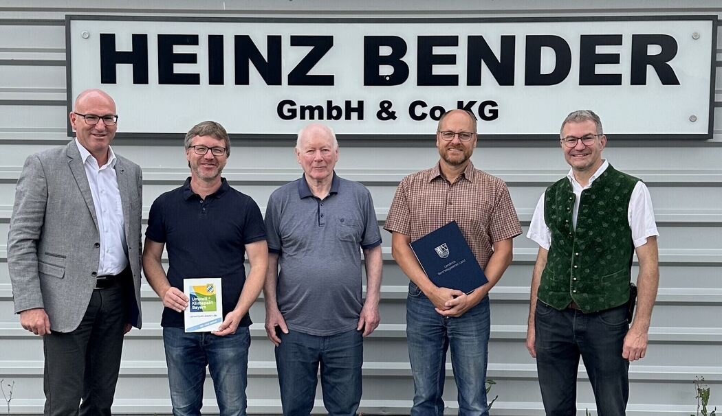 Das Metall- und Stahlbau-Unternehmen Bender ist ein Familienbetrieb, der auch international tätig ist und aktuell rund 30 Mitarbeitende beschäftigt. Die Bayerische Staatsregierung hat die entsprechenden Umweltschutzmaßnahmen geprüft, zu denen etwa das Betreiben einer Fotovoltaikanlage, der Einsatz von LED-Leuchtmitteln zu 95 Prozent oder die hundertprozentige Nutzung von Ökostrom zählen. Auch Investitionen in eine energieeffiziente Querschnittstechnologie bei Elektromotoren, Pumpen oder Klimaanlagen sowie das Abschalten von Druckluftkompressoren außerhalb der Betriebszeiten oder ganz schlicht die Verwendung von waschbaren Mehrwegputzlappen wurden gewürdigt.