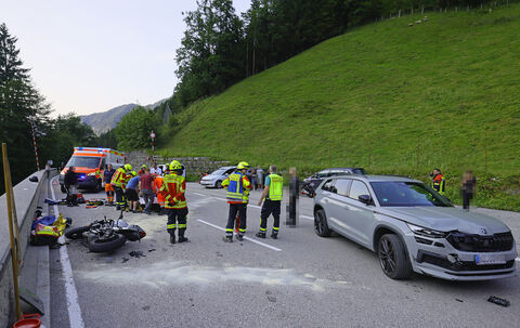 Die Freiwillige Feuerwehr Ramsau war im Einsatz, säuberte die Straße von den ausgelaufenen Betriebsstoffen und regelte den Verkehr während der Unfallaufnahme.