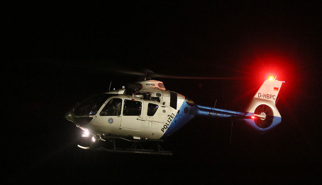 Die Bergwacht war sich ziemlich sicher, dass der junge Mann aufgrund der Schwierigkeit des Geländes und wegen des vielen Altschnees zeitnah umdrehen würde. Dabei war jedoch unklar, welche Route er nehmen würde und ob er eventuell abgestürzt ist. Gegen 21.15 Uhr holten die Ehrenamtlichen den Kerosinanhänger aus Berchtesgaden und leuchteten einen Landeplatz am Sportplatz aus. Zeitgleich flog die Besatzung von »Edelweiß 3« mit Wärmebild-Kamera und Technik zur Handy-Ortung an, um das Gebiet aus der Luft abzusuchen. Die Besatzung traf gegen 21.30 Uhr ein und entdeckte den Vermissten nur wenige Minuten später in 2250 Metern Höhe am steilen Schneefeld unterhalb der Südspitz-Gipfelrinne. Der Finne begann bereits mit dem Abstieg als der Heli ihn mit dem Scheinwerfer anleuchtete. »Edelweiß 3« wies den Mann über Lautsprecher an, stehenzubleiben. Zeitgleich erreichte einer der Begleiter den 19-Jährigen am Telefon und wies ihn ebenfalls an, zu bleiben, wo er ist.
