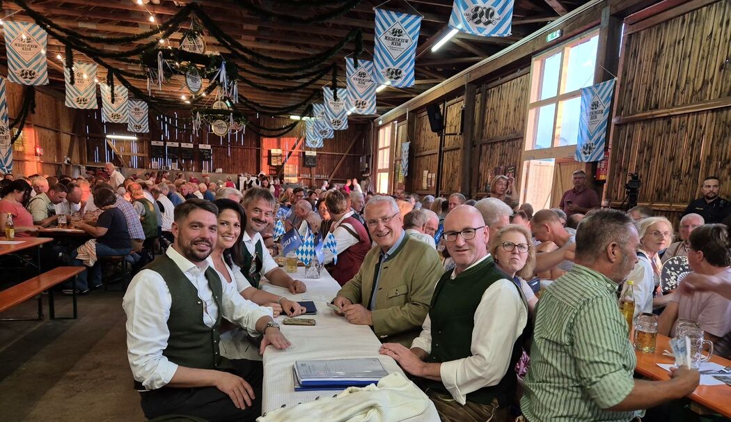 Saaldorf-Surheim – Wie der CSU-Ortsvorsitzende von Saaldorf-Surheim, Maximilian Lederer, am Mittwoch die rund 200 Gäste des politischen Abends beim Steinbrünninger Herbstfest wissen ließ, hatte der bayerische Staatsminister für Inneres, Sicherheit und Sport, Joachim Herrmann, extra seinen Urlaub unterbrochen, um als Sprecher in die Thomanhalle zu kommen. Seine Staatsminister-Kollegin und CSU-Kreisvorsitzende, Michaela Kaniber, hatte Herrmann eingeladen und der hatte, wie er sagte, »sowieso keine Chance, der Michaela zu widersprechen« und stand gut gelaunt auf der Bühne. Er hatte keinen weiten Anfahrtsweg, denn mit dem Besuch in Steinbrünning beendete er seinen achttägigen Berchtesgaden-Urlaub mit der Großfamilie.