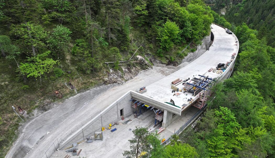 Die Arbeiten an der Lawinengalerie laufen planmäßig. Nach aktuellem Stand werden die reinen Betonarbeiten bis Herbst abgeschlossen sein. Im Anschluss daran beginnt die Installation der umfangreichen Betriebstechnik. Da die Schutzgalerie als Tunnelbauwerk gilt, wird sie mit einer modernen sicherheitstechnischen Ausstattung nach den einschlägigen Regelwerken für Tunnelbau und -betrieb ausgestattet. Für diese Arbeiten sind etwa vier bis sechs Monate eingeplant.