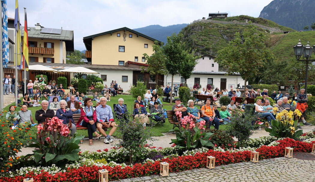 Schönau am Königssee – Zum dritten Mal hatte die Tourist-Information Schönau am Königssee zur »Lichternacht am Rathausplatz« eingeladen. Die Blumenpracht des Rathausgartens, gehegt und gepflegt von Hausmeister Andreas Heilmann, war eine Augenweide. Das gesamte Team der Tourist-Info hatte ein bezauberndes Ambiente geschaffen: 80 Holzlaternen, die sonst bei Winterwanderungen Verwendung finden, wurden aufgestellt, dazu mit viel Liebe wunderschöne Dekorationen gestaltet. 15 Strahler sorgten für die Illumination, viele Lampions schmückten den Platz. Für die Tontechnik war Tassilo Neugebauer verantwortlich.