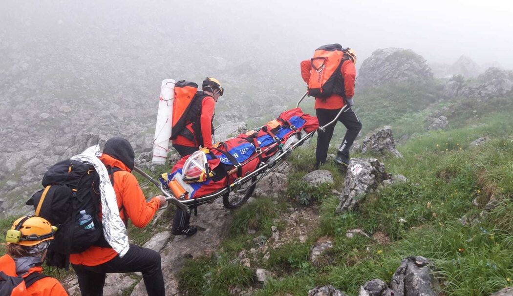 Eine 54-jährige Hamburgerin war am Seeleinsee gestürzt und auf den Kopf gefallen und musste aufwendig mit der Trage bis zur Priesbergalm transportiert werden.