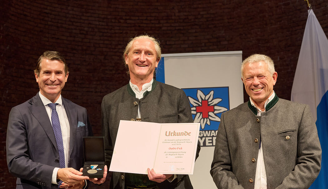 Er hat sich im legendären »Riesending«-Einsatz im Untersberg 2014 große Verdienste erworben, auch in der dortigen Einsatzleitung. Seit 2021 ist er Bereitschaftsleiter. Als Disponent der Integrierten Leitstelle Traunstein ist er mit unzähligen alpinen Einsätzen auch beruflich befasst und somit ein wichtiger Ansprechpartner bei der strategischen und taktischen Einsatzplanung im gesamten Chiemgau. Europaminister Eric Beißwenger lobte bei dem Festakt die bayerische Bergwacht ausdrücklich: »Sie sind Helden der Berge, die unter schwersten Bedingungen Menschen aus gefährlichen Situationen retten. Sie fragen nicht, sie helfen.