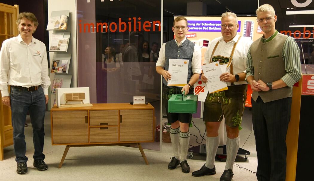 Berchtesgadener Land – Holz ist ein vielseitiger Werkstoff. Um ihn zu bearbeiten, braucht es Gespür, Kreativität und solide, handwerkliche Kenntnisse. Diese Fähigkeiten haben 15 junge Frauen und Männer während ihrer dreijährigen Schreiner-Ausbildung erworben und bei den Abschlussprüfungen unter Beweis gestellt. Nun wurden die Lehrlinge in einer von der Schreiner-Innung Berchtesgadener Land würdig gestalteten Feier von ihren Pflichten freigesprochen und nach alter Tradition in den Gesellenstand erhoben. Innungssieger wurde Florian Schröter von der Schreinerei Wendl aus Schönau am Königssee. Der Schneizlreuther überzeugte mit seinem Gesellenstück auch die Jury des Wettbewerbs »Die Gute Form« und schaffte hier ebenfalls den 1. Platz.