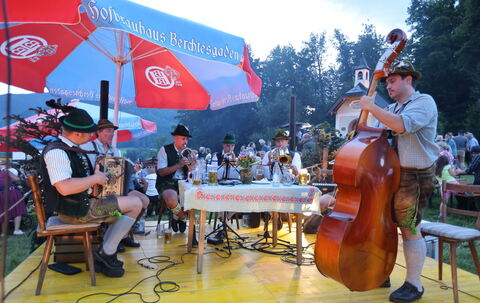 Einheimische und Kurgäste freuten sich über das Angebot, die Jennerbahn von 15 bis 24 Uhr zu vergünstigten Konditionen benutzen zu können. Viele gingen auch zu Fuß hinauf und genossen den Sonnenuntergang am Gipfelkreuz. Der Vorsitzende der Berchtesgadener Bergbahn AG, Thomas Mühlthaler, ließ auf der voll besetzten Aussichtsterrasse der Jenneralm das »Oxn-Augn Trio« aufspielen. Viele Trinksprüche und witzige Ansagen strapazierten die Lachmuskeln. Für einen stimmungsvollen Sommerabend tat die Natur das Übrige: der herrliche Bergblick und um 21.08 Uhr der Sonnenuntergang.