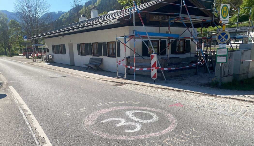 So geschehen in der Ramsau, wo besorgte Bürger seit langem beantragt haben, dass beim Vereinskaser des GTEV D´Achentaler ein Schild mit einer Geschwindigkeitsbegrenzung auf »30« angebracht wird, um die querenden Kinder besser gegen Raser zu schützen. Weil das bisher nicht geschehen ist, griffen besorgte Eltern zur Selbsthilfe und malten kurzerhand mit Kreide »Für unsere Kinder 30« auf die Straße. Ein Dug ist auch, wenn umherstehende Gerätschaft »aufgeräumt« wird. Auf diese Art und Weise könnte der verwaiste Anhänger auf eine Wiese in der Ortschaft Engedey gebracht worden sein.
