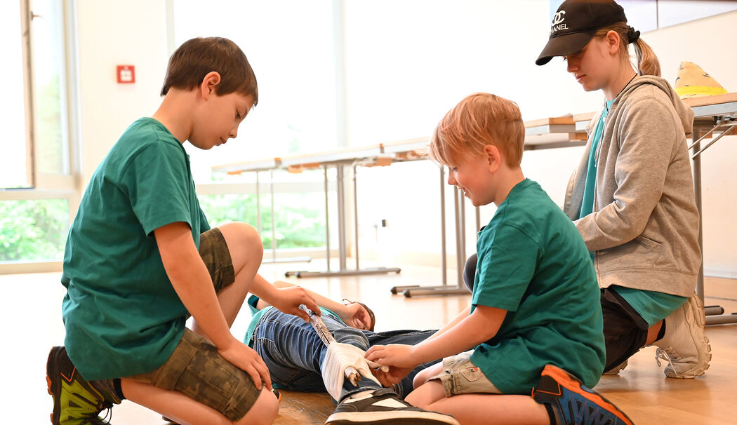 Die Teams aus Ainring, Bad Reichenhall, Berchtesgaden und Freilassing gingen bei schönstem Frühlingswetter in mehreren Disziplinen an den Start, wobei sie gemeinsam ein Plakat gestalteten, um neue Kinder für ihre Gruppe zu werben, im abschließenden musischen Teil ein tagsüber vorbereitetes Theaterstück aufführten und tagsüber bei einem Parcours durchs Gymnasium und die Innenstadt mehrere Stationen besuchten, die erfahrene Rotkreuz-Ausbilder und Einsatzkräfte als Schiedsrichter betreuten, bei denen Rotkreuz-Wissen, Erste Hilfe in Praxis und Theorie, aber auch Spiele und Spaß auf dem Programm standen.