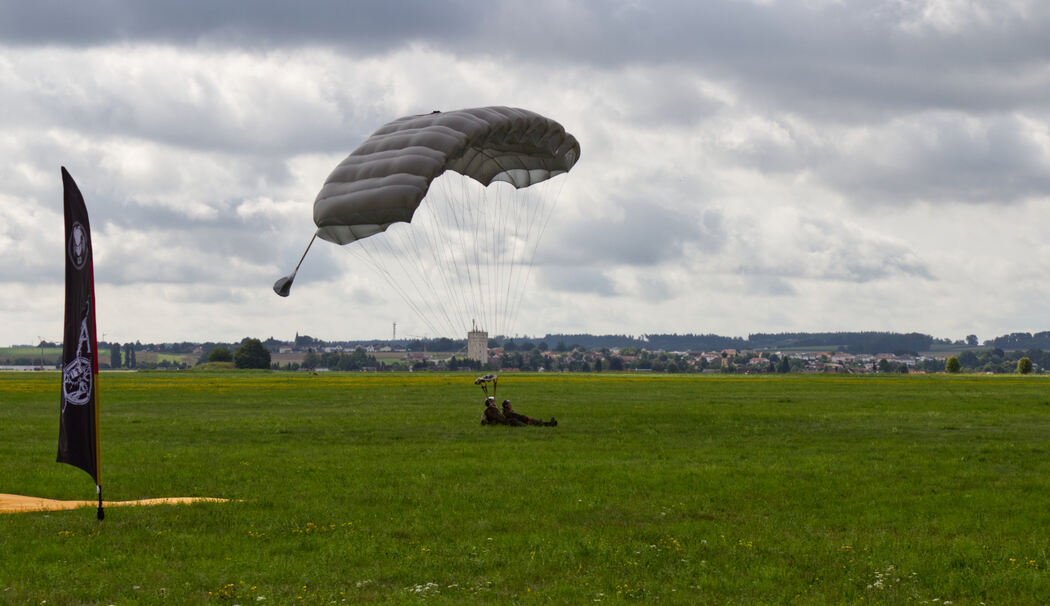 Jährlich wird eine Sprungwoche organisiert, damit die Fallschirmspringer der Gebirgsjägerbrigade 23 und Tandemmaster des Kommando Spezialkräfte ihre Sprunglizenz aufrechthalten können. Als Sprunggepäck dienten ihnen diesmal freiwillige Soldaten. Die sogenannte »vertikale Verbringung« wird im gleichen Zuge genutzt, um Spenden für lokale karitative Einrichtungen zu sammeln. Dieses Jahr wird für die Kinderkrebshilfe im Berchtesgadener Land und Traunstein von den Teilnehmenden gesammelt. Der in diesem Jahr zu unterstützende Verein wurde 2001 als »Freunde der Kinder e.V.« gegründet und finanziert sich ausschließlich aus Mitgliedsbeiträgen, Spenden und Aktionen. Tandemmaster der Bundeswehr benötigen zur Aufrechterhaltung ihrer Sprunglizenz mehrere dieser Sprünge jährlich. Eine interessante Möglichkeit für Soldatinnen und Soldaten ohne Fallschirmsprungausbildung, denn als Leichte Kräfte sind Gebirgsjäger auch luftbeweglich. Wie die Jahre zuvor, wurde durch das Vorhaben die Einsatzbereitschaft der Freifaller der Bundeswehr gewährleistet. So kam es, dass am letzten Sprungtag einer der Springer seinen 1 000. Sprung feiern konnte und am Boden im Spalier auf ihn gewartet wurde: Ein toller Abschluss eines in Erinnerung bleibenden Tages. fb