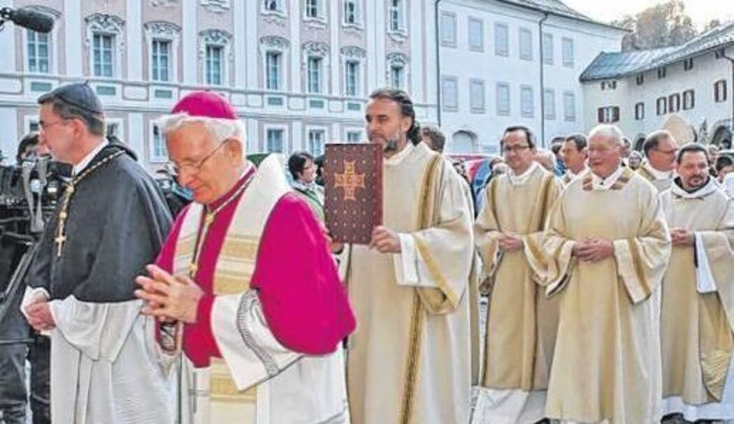 Die Weihnachtsschützen schossen vom Lockstein zum Beginn des Kirchenzugs und zur Wandlung einen Ehrensalut. Unter den hohen kirchlichen Würdenträgern waren auch Bischof Josef Clemens aus Rom, Frauenlobs Cousin Korbinian Birnbacher, Erzabt von St. Peter in Salzburg, sowie vier Domkapitulare. Auch eine kleine Gruppe der Schweizer Garde war eigens aus Rom angereist, allerdings in Zivil. Die Marktmusik führte den festlichen Zug an und spielte dann vor dem geschmückten Portal der Stiftskirche ein kurzes Standkonzert.