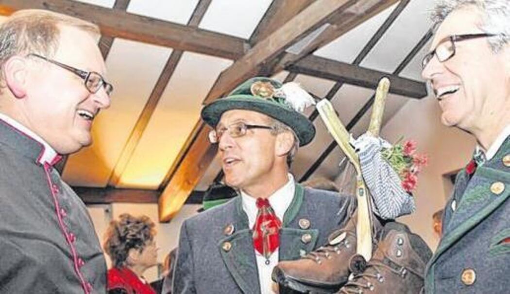 Vor dem Pfarrheim St. Andreas bildete die Bevölkerung noch einmal ein Spalier für Frauenlob und den Bischof. Beim Stehempfang nahm sich der neue Pfarrer viel Zeit für Kennenlern-Gespräche. Seiberl und der Marktschellenberger Bürgermeister Franz Halmich überreichten als Geschenk einen Wanderstab mit Bergschuhen, Notproviant und Schnapserl, damit Frauenlob zu Fuß seine neue Heimat erkunden kann. Freude und Stolz stand in den Augen seiner Mutter Helena Frauenlob aus Kleinhögl bei Piding. Seit 1981 sei ihr Sohn aus dem Haus und immer weit weg gewesen, verriet sie. »Jetzt kann ich auch nach Berchtesgaden hineinfahren und ihn besuchen, wenn er daheim ist.«
