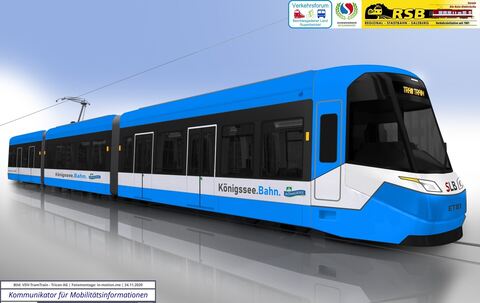 Im Wesentlichen soll die neue Trasse wieder der Linie folgen, auf der bereits die »Grüne Elektrische« bis Oktober 1938 zwischen der Landesgrenze und dem Königssee unterwegs war. Also immer entlang der Bundesstraße, über die Marktschellenberger Ortsbrücke hinaus zur Schnitzhofallee. »Hier ist überall ausreichend Platz, denn wir benötigen für die Trasse nur etwa vier Meter«, erklärt Dr. Bösenecker. Beim Schnitzhofheim am Ortsausgang der Marktgemeinde halten Bösenecker und Fuchs die Errichtung eines großen Bahnbetriebswerks für sinnvoll. Hier werden dann die Fahrzeuge gewartet und in den Nachtstunden beziehungsweise in den Schwachlastzeiten abgestellt. »In der eher strukturschwachen Marktgemeinde Marktschellenberg könnten dadurch rund 250 neue Arbeitsplätze entstehen«, fügt Richard Fuchs an. Sie sollen dann die 25 bis 30 Triebwagen, die auf der neuen Strecke verkehren werden, warten und gegebenenfalls reparieren. Drei davon bilden künftig einen bis zu 120 Meter langen Zug, der bis zu 660 Personen befördern kann.