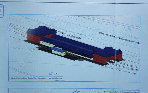 Weiter ginge es auf der ehemaligen Trasse bis auf Höhe Stangermühle, von wo aus es gilt, den Höhenunterschied hinauf zur Bundesstraße zu schaffen. Bösenecker und Fuchs können sich vorstellen, die Steigung im Hang zwischen Fischzucht und Campingplatz zu überwinden. Oben würde man – so die Idee des Verkehrsforums – die Bundesstraße nur queren, um über die Richard-Voß-Straße das große Feld zwischen Königssee-Parkplatz und Jennerbahn-Talstation zu erreichen. Die vorläufigen Pläne sehen vor, hier eine große Bahnhofshalle zu errichten.