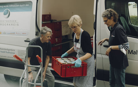 Das blitzschnelle Auf- und Abbauen des mobilen Hochwasserschutzes »Boxwall« war das Ziel an einer weiteren Station. Durch die Flexibilität des Systems kann sehr schnell eine Schutzwand zum Schutz für Gebäude oder vor über die Ufer tretenden Bächen und Flüssen aufgebaut werden.