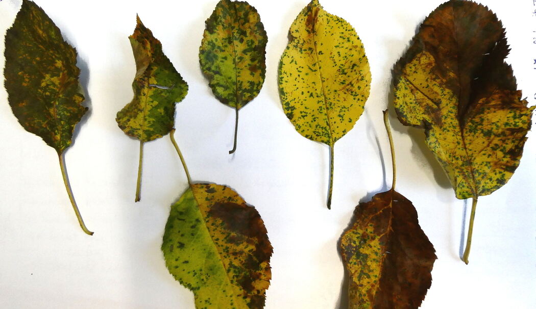 Der Erreger ist ab dem Frühsommer nach längeren Regenperioden, so wie dieses Jahr ab Ende Juni, sichtbar. Grau-schwarze Blattflecken, umgeben von einem braun-roten Rand an der Oberseite der Blätter, weisen auf eine Infektion von Marssonina coronaria hin. In diesem Stadium ist der Pilz auch mit dem weit verbreiteten Apfelschorf zu verwechseln. Später wachsen die Flecken zusammen oder verästeln zwischen den Blattadern. Dadurch werden die Blätter geschwächt, verfärben sich gelb, oft mit noch intakten grünen Flecken dazwischen und fallen dann einige Tage später ab. In dieser Zeit ist der Pilz durch sein »buntes« Auftreten am Laub am leichtesten zu erkennen, wobei jede Sorte leicht unterschiedliche Symptome zeigt.